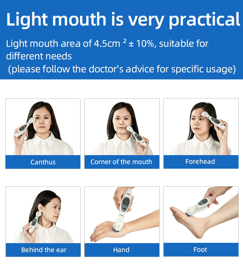 The Baifuzheng 308nm phototherapy device utilizes a 308nm excimer light source, a wavelength clinically proven to be highly targeted for vitiligo treatment. Its pure spectrum acts precisely on the skin's surface, effectively activating local tyrosinase activity, promoting the proliferation and differentiation of melanocytes, thereby helping the affected areas gradually restore normal skin tone. The device features a spot size of 4.5 cm² and comes with light-blocking patches, allowing flexible treatment for vitiligo patches of varying sizes and shapes.